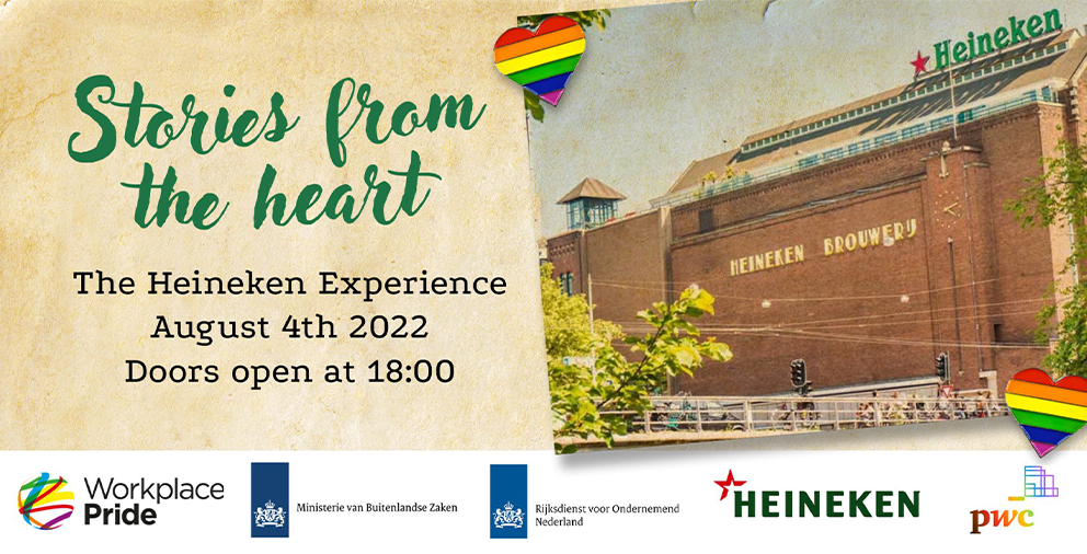On Thursday, August 4th – After a hiatus of several years, Workplace Pride was honoured to again organise the 2022 edition of ‘Stories From the Heart’ as our main Amsterdam Pride event. The event was kindly hosted by our Foundation Member, Heineken, and co-hosted by our Foundation Partner PwC. This year’s event featured activists from Azerbaijan, Bulgaria, Georgia, Hungary, Kazakhstan, Kurdistan, Poland, Serbia, and Slovakia.